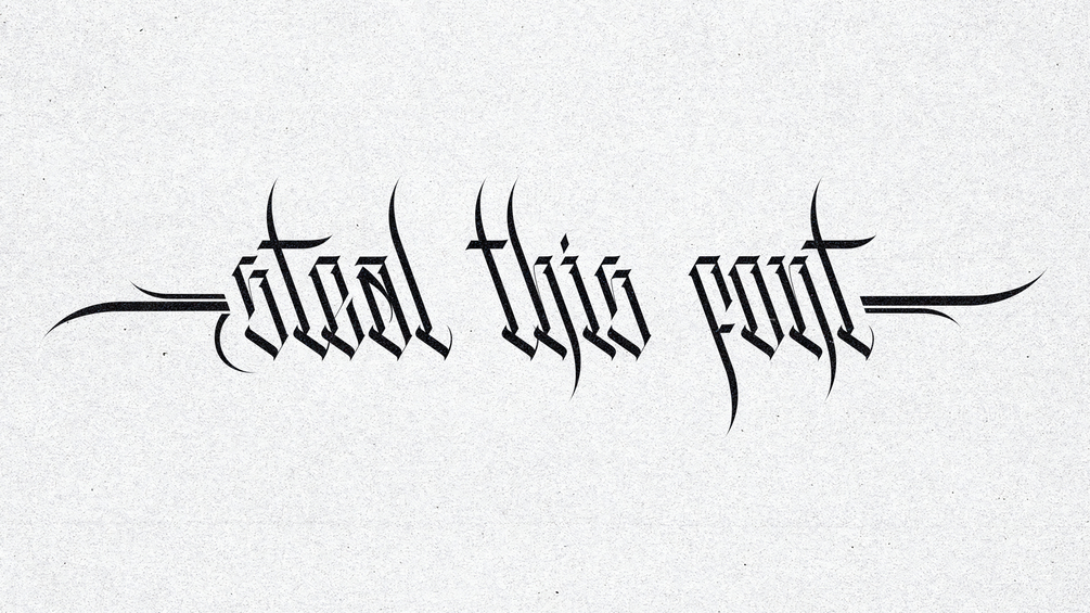 KATANA is a modern blackletter font with 145 glyphs, it contains numbers, signs, accents, ornaments and a high version for the letters.